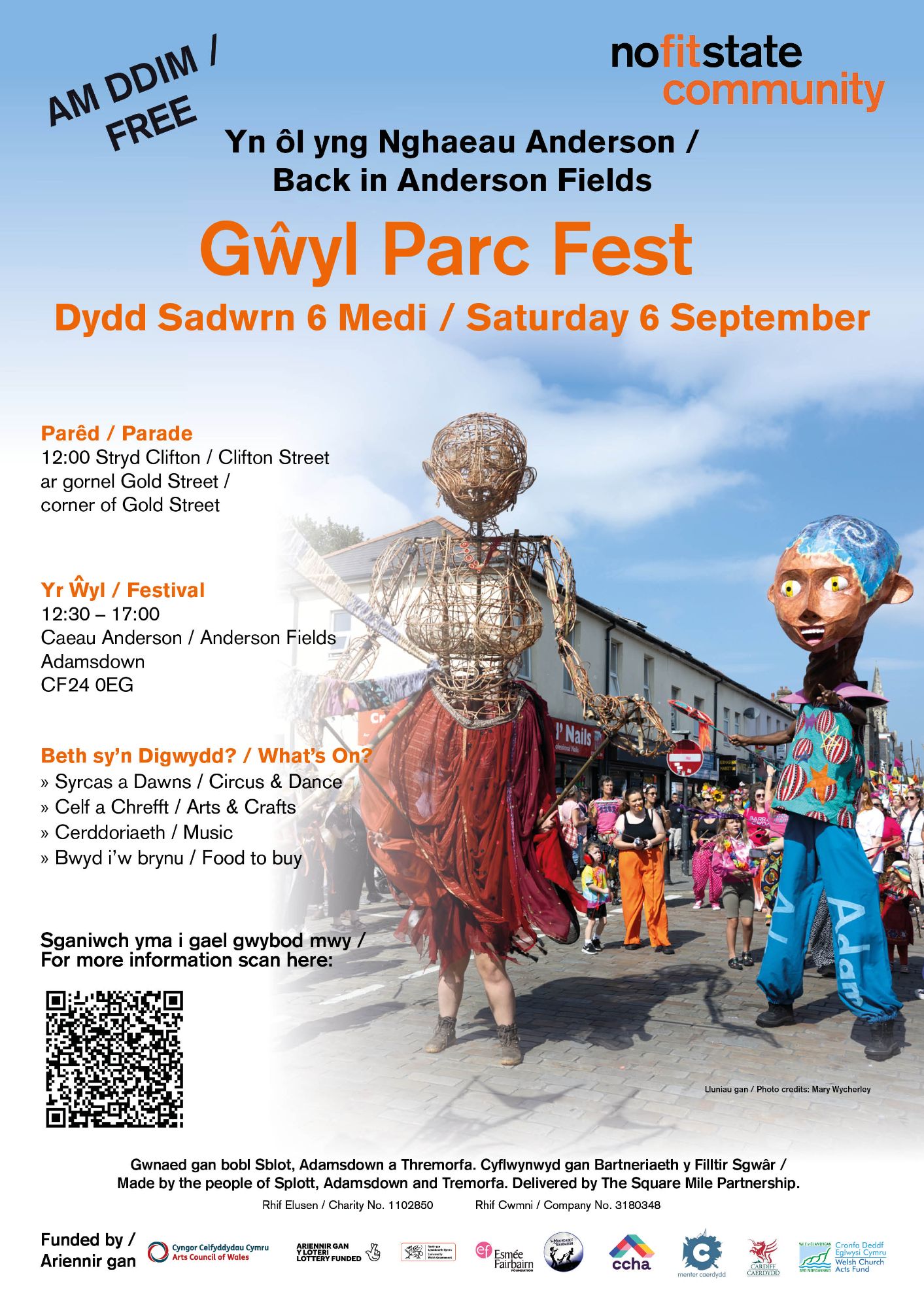 Mae Gŵyl Parc Fest – Tir Cyffredin yn ŵyl i ddathlu celfyddydau, diwylliant a chymuned anhygoel yr ardal. Mae’r diwrnod yn dechrau â pharêd am 12:00 o gornel Stryd Clifton a Gold Street i Gaeau Anderson (0EG, Constellation St, Caerdydd). Mae’r ŵyl yn dechrau am 12:30 a'r diwrnod llawn hwyl yn para tan 17:00.